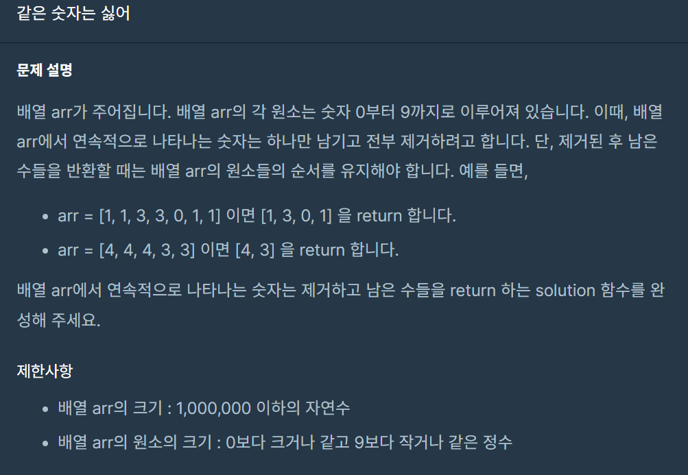 [프로그래머스] 같은 숫자는 싫어요 본문