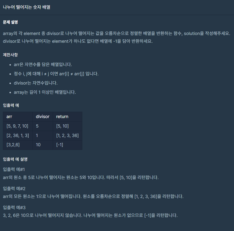 [프로그래머스] 나누어 떨어지는 숫자 배열 본문