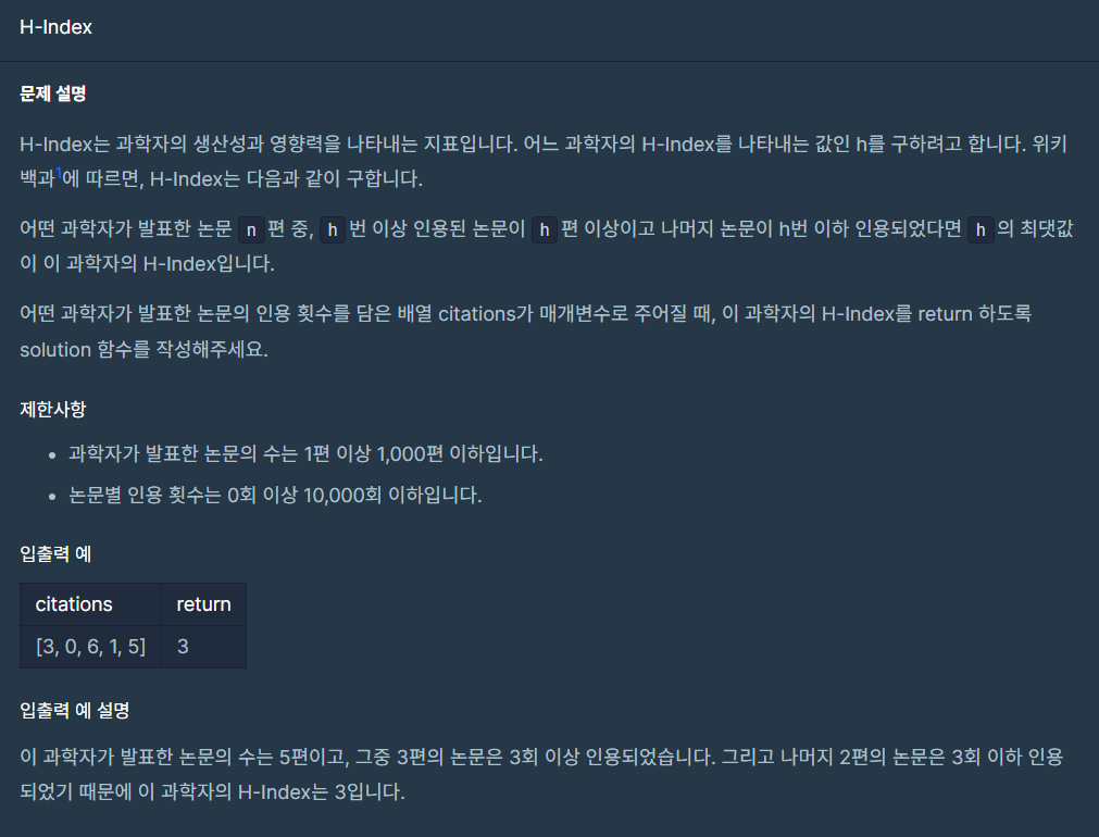 let hIndex = 0; // 초기 h-index 값을 0으로 설정